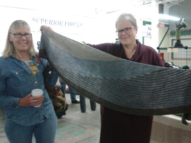 The organizers of this event are great to work with. I love the variety of vendors ranging from fiber artists with fantastic felted clothing and rugs, to pattern designers, to farms selling raw fleece. The classes offered reflect this variety, too. Felted slippers and sculpted “bowls” are among the unusual project-oriented classes. They also put together an amazing number of door prizes for visitors to the event.