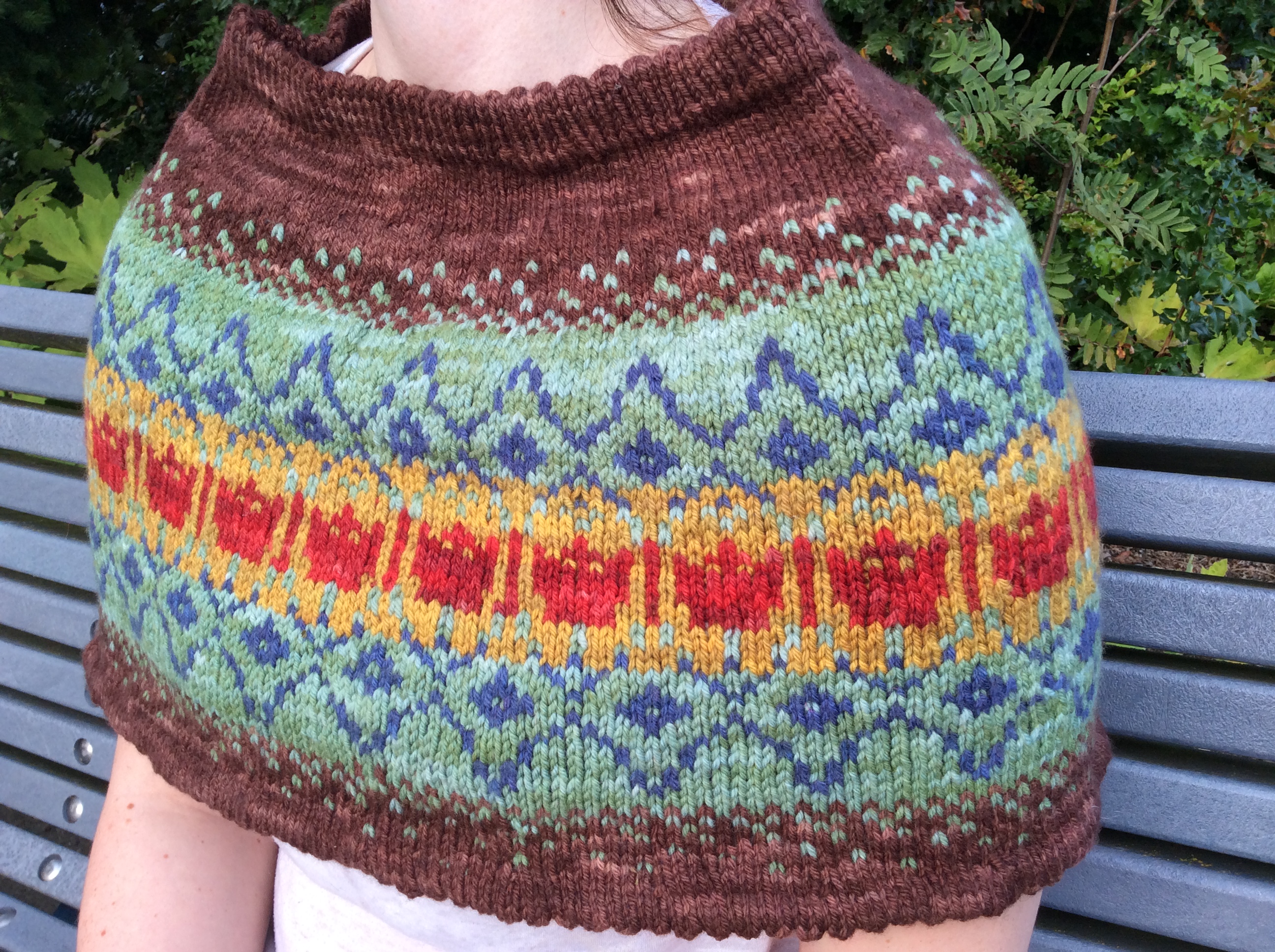 Other dyeworks in the pipeline include the preparation of new Fall colors in the Tweed DK and Tweed Sock, kits for the Churchmouse ribbed skirt in Brynn (posted in a previous blog), and kits for a new pattern to be published, the Keukenhof Gardens Capelet/Cowl (see photo). Keukenhof was inspired by a trip to the famed garden of that name in Holland when I was about 8 years old and living in Germany with my parents. Keukenhof Gardens is a well-known destination that features tulips in every variety, color, and shape you can think of. Trips to Holland with my parents are fond memories for me because I struggled to learn the German language and many of the Dutch people spoke English at the time. When Lismore DK merino came out of the dye pot in this red I knew I wanted to knit Keukenhof-inspired tulips in memory of my time in Holland. The rich brown of the background represents the dark earth from the flat floodplains of the farmlands in the Netherlands, the sage and green for the leaves and the bright china blue for the expansive sky.