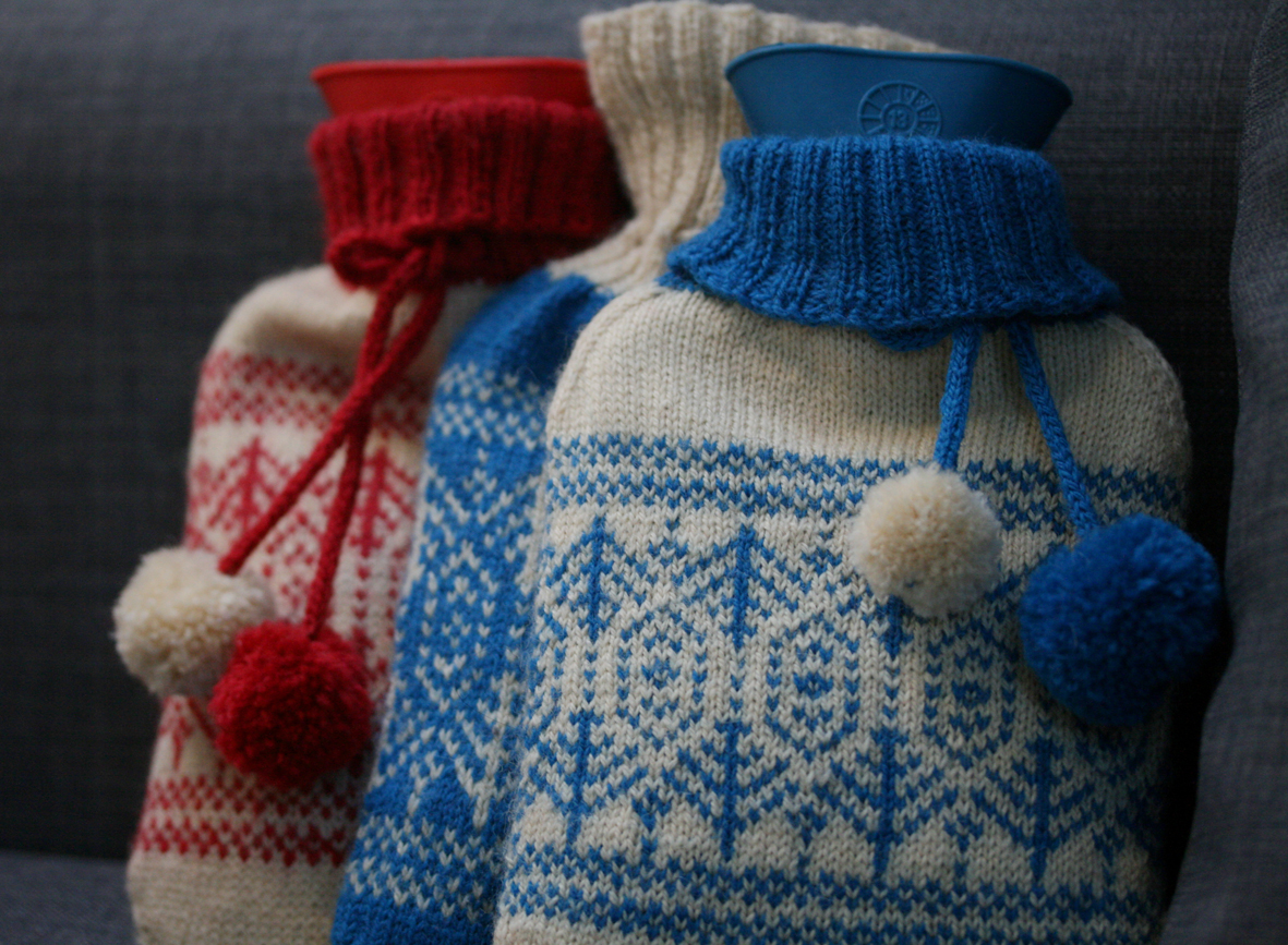 Remember hot water bottles? My first winter in my little 1938 cottage with baseboard heating, my hot water bottle was my best friend. In the evenings I knit warm sweaters on my lap. Just prior to going to bed I would pre-warm the sheets with a hot water bottle. I remember wrapping my toes around it and drifting off to sleep cozy with the wind blowing outside. I love this kit idea, it takes the humble red hot water bottle up a few notches…